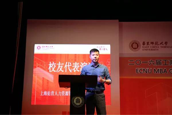 2012级MBA校友上海佑肯人力资源管理总经理季姚力先生为临别的同学们送来了三顶“帽子”——品牌帽、校友帽、思考帽。季学长讲到毕业后走向社会,同学们都将戴上一顶金灿灿的品牌帽——华东师范大学MBA,需珍惜并发扬好。季学长呼吁同学们毕业后应承担起校友的角色和义务,将好的经验传承给学弟学妹,向准MBA学员宣扬华师大的精神和品牌。通过校友自身的价值提升来实现学校价值的提升。作为华师大MBA毕业的学员,应思考和回味“滋身养智、厚文重义”给予的人生内涵和心灵的支撑。季学长祝愿校友间团结友爱互帮互助,同创美好未来。同时祝愿华师大MBA披荆斩浪,走向更加辉煌的明天。