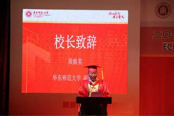 典礼在庄严的国歌声中正式拉开序幕,华师大副校长周傲英教授致辞。