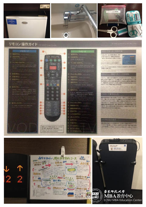 我们住的小型酒店,房间面积不过8平方,却晾衣绳、加湿器、小冰箱应有尽有;电视机旁边一张遥控器使用说明书,细致到注明每个按键的用途;电梯厅还贴有周边景点的手绘地图,方便不熟悉周边的客人;酒店还提供针线包和自动熨裤机…所有细节都考虑得那般完备周全,怎让人不生宾至如归之感。