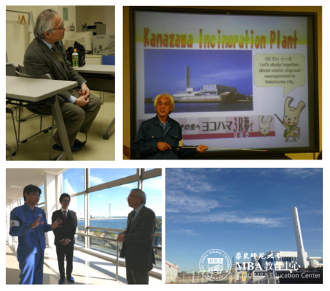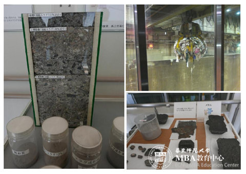 横滨市环境事业局金泽工厂让我们看到另一番景象。 废物回收工厂一尘不染,窗明几净,宛如来到精密实验室。在这里,年长的操作师傅先向我们讲解工厂无污染处理垃圾的原理并大屏幕播放了焚烧垃圾的实时监控录像。而后另一位一线操作和管理人员又带我们来到车间现场,近距离观看大型设备如何分类分拣搅拌垃圾,如何将其导入垃圾处理装置并进行焚烧。令大家惊奇赞叹的是,垃圾烧却后的灰质竟也可以用作道路的路基铺垫材料。真是整个垃圾处理全程没有丁点废水废气流入空气,把废物再利用和环保做到了极致。
