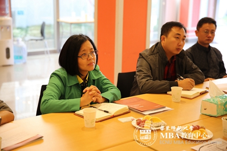 随后,中心主任及各部门负责老师和张霜主任一行就MBA办学中培养特色、招生推广、教学教务、职业发展和学生事务等议题进行交流探讨,双方特别围绕课程教学的深化、案例教学的推进、双导师制的构建和教学质量的把控进行了深入讨论,相互交换了在MBA培养过程中的探索与创新,分享宝贵经验。