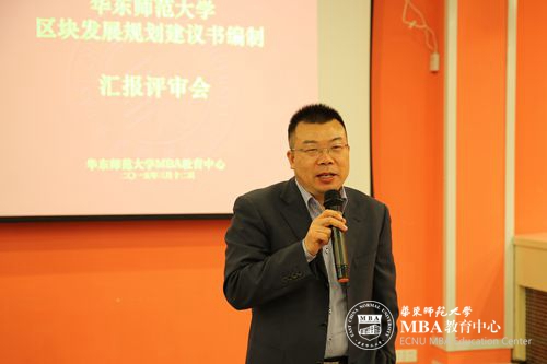 MBA教育中心结合MBA培养体系,给学员创造实践和实习的机会,受学校国资处委托发布华东师范大学区块发展规划建议书编制方案征集,并邀请商学院杨勇教授、程贵孙副教授担任指导教师,经过一个多月的努力,3月12日晚进入到汇报评审环节。孙真荣副校长、校国有资产管理处嵇渭萍处长、夏祥伟副处长、商学院杨勇教授、程贵孙副教授出席评审会并担任评委。