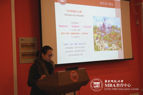 据悉,参与此次华东师范大学区块发展规划建议书编制的MBA学员具有商业地产、房地产咨询、投融资行业领域的从业背景。此次项目中学员一共提交了7份的建议书,经过3月10日初审会后共有5组学员进入了最终的汇报评审环节。在汇报环节中,学员们表达了对华东师范大学的深切感情,以及在进行方案规划时的极大热情。