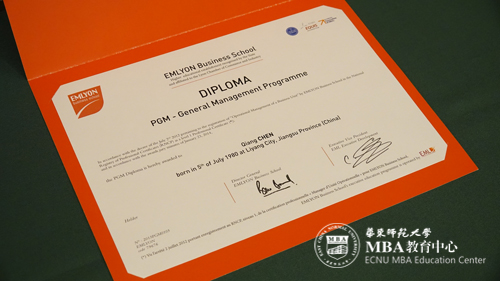 5月8日晚,华东师范大学-里昂商学院国际品牌管理MBA/PGM合作项目PGM证书授予仪式在逸夫楼三楼多功能厅隆重举行。项目第二届(2012级)20位学员在两年半的培养中,学习国际品牌管理前沿理论,通过国际研修拓展全球视野,取得丰硕学习成果,顺利获得学位。在仪式上里昂商学院向每一位学员授予了PGM(Programme in General Management)证书。