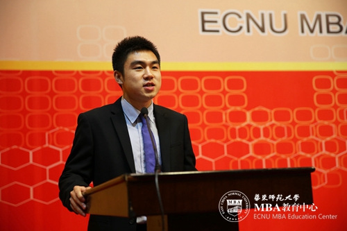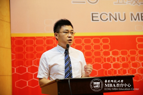 2013级学员宋晋捷作为老生代表发言,他分别从系统知识的学习、学生联合会的工作以及案例大赛的生活,与大家分享在华东师范大学MBA学习期间的收获。他最后感慨:华东师范大学MBA给到我们的,不仅是商业和管理,更多的是人文和胸怀。“滋心养智,厚文重义”的理念将在未来,始终伴随我们一起同行。