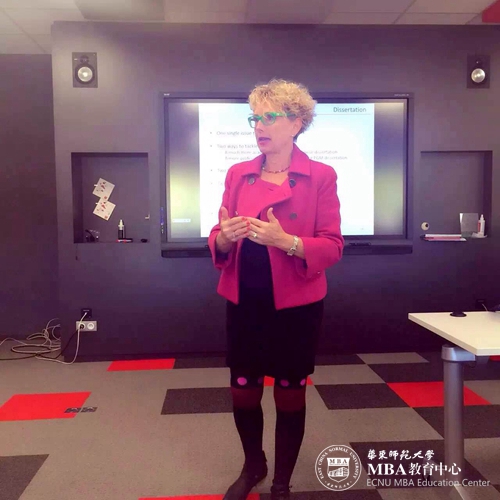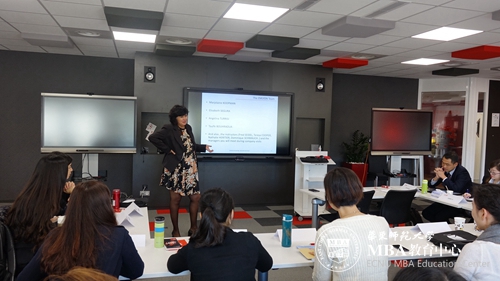 图:Teresa COOPER教授为大家做明天开始启动的商业模拟游戏介绍