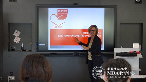 图:校友事务负责人Sanrine CAILLAT向同学们介绍EMLYON FOREVER校友网络