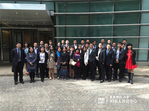 经过了上周的台风过境、气温骤降,周一的清晨阳光明媚,华东师范大学MBA纽约大学斯特恩商学院访学学员在商学院何佳讯教授的带领下开启了令人大开眼界的高端企业参访。第一家参访企业是Bloomberg(彭博新闻社),公司弧形设计的大楼,让办公室的每个角落都充满阳光;楼道里到处都有的鱼缸等摆设,休息大厅里提供零食、加班餐、咖啡、果汁、水果和汤等,良好的后勤保障让所有员工拥有最无后顾之忧的工作环境。Bloomberg的另外一个核心理念是透明,所有人从CEO到基层员工的办公都是开放的,每个人的名片都没有title,如此开放和高效的工作环境让人惊奇和叹服。