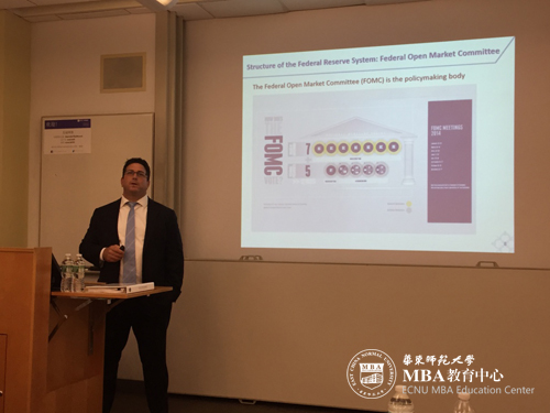 为使我们一行对美国联邦储备银行有更深入的理解,纽约大学特邀在美联储纽约分行风险政策部门工作的校友Justin Lerner为我们解读了美联储的职能,即平稳物价和增加美国就业率。从解读美联储系统开始,我们逐一讨论了雷曼兄弟的破产、美联储在美国股灾中的作用等等。大家也就中国、美国央行在救市中的作用做了讨论。