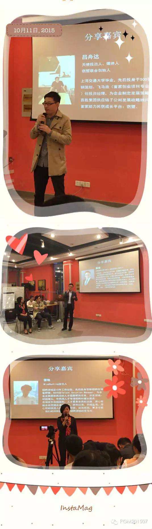 嘉宾们分享了创业路上的切身体会。宿盟创始人吕舟达提出的三个问题“擅长什么,喜欢什么,什么最赚钱”让大家陷入了思考,继而提出了“路径依赖”这个助力成功的秘诀。戎博娱乐栗堃解答了台下同学关于创业资金以及如何看待同行优劣势的问题,让大家获益匪浅。MindHunting合伙人雷艳(Lisa)作为草根创业者给大家解释了合伙人的重要性,分享了她创业一年多以来的心路历程,让很多同学颇有共鸣。