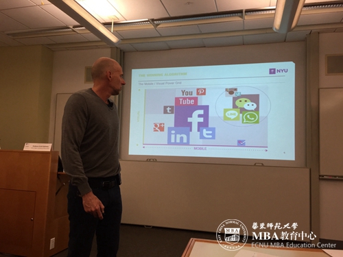 本次纽约大学一共为华东师大师生提供了五门商业前沿课程:数字营销、数字经济学、创新创业、国际会计与财务报表分析及全球化管理。可以说,几门课程都与实践紧密结合,梳理了商业世界前沿知识要点及应对当今“互联网+”时代各种问题的分析思路。课程在强调颠覆、创新的同时兼具很强的实用性。