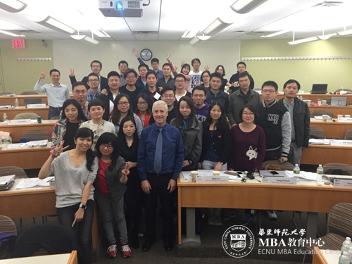 从如何分析一种商业模式的成功和失败,到如何预测一个上亿级的公司的未来发展走势;从与美国的互联网创新翘楚交流,到聆听“中国通”的实践教父的商业智慧;从激发创新思维,到开启创新之路;从分析一个公司的上市报表,到揭开公司幕后的数据秘密;从在海外拓展业务,到量化风险实现战略控制; 2014级国际企业管理精英班的同学们看到的不止是商业世界的精彩和商界精英的经验,更是真切地学到了如何解决问题的方法。纽大老师敬业、认真的教学态度更使大家感动。在此特别感谢所有老师的倾囊相授,华东师大师生一行不止受益匪浅,更是意犹未尽。纽约大学课堂,我们一定后会有期。