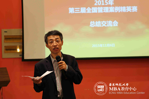 金润圭教授在总结会上对学员们在分区赛和全国总决赛上的表现进行了评价,充分肯定学员们在参赛过程中的表现,发扬了华东师范大学MBA多年来在案例大赛上的优良传统,这种无私奉献、团结合作的精神应该继续传承下去。他同时也总结了此次参赛所得出的经验教训,希望学员们在明年的第四届全国管理案例精英赛中再接再厉,再创佳绩。